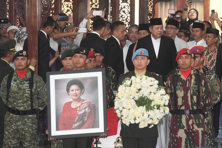“Almarhumah adalah istri yang sangat setia dalam suka dan duka. Melewati hari-hari yang tidak mudah dalam mendampingi Presiden keenam RI Bapak Susilo Bambang Yudhoyono dalam membangun bangsa negara yang kita cintai,” ujar dia.